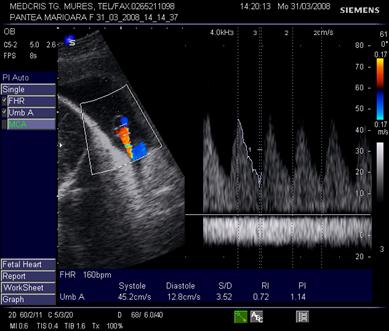 Aspecte patologice anormale ale examenului Doppler ombilical