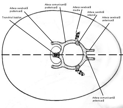Poligonul Willis, sediul anastomozelor vasculare din principalele vase cerebrale, se identifica plecand de la sectiunea transversala a masurarii diametrului biparietal, prin baleierea sondei spre sectiunea bazei craniului.