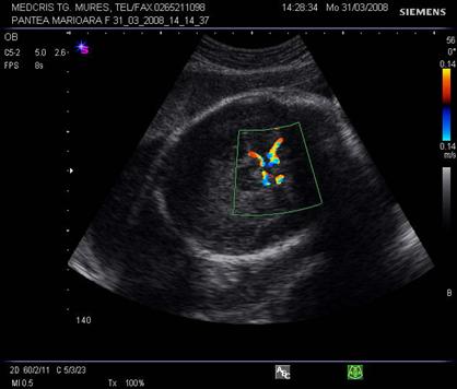 Fig. 324 .Poligonul Willis la o sarcina de 36 sapt., la DOPPLER cu CFM