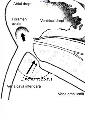 Ductul venos creaza o comunicare intre sistemul venos periferic ombilical si sistemul venos central al fatului. Gradientul presional in ductul venos se modifica in caz de suferinta fetala.