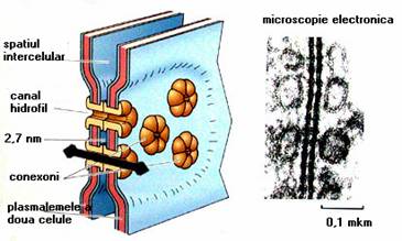 Fig. 35. Structura si aspectul electrono- microscopic al jonctiunilor de comunicare