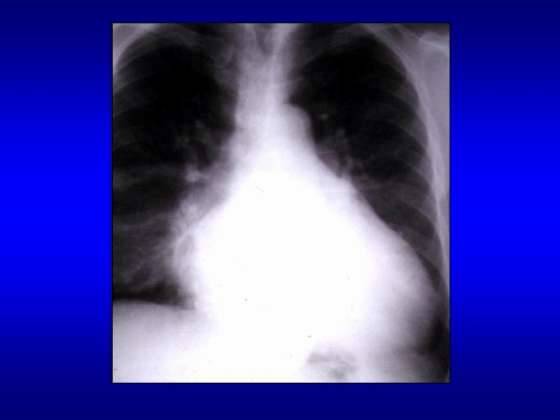 - ventricul stang marit, ulterior ventricul drept marit datorita supraincarcarii