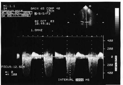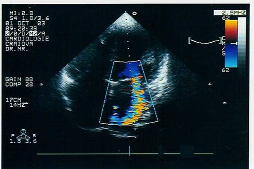 ECO color si Doppler pulsat permite cuantificarea regurgitarii evidentiind velocitatea maxima in sistola in atriul stang si se poate aprecia lungimea si aria jetului regurgitat pentru aprecierea gradului regurgitarii.