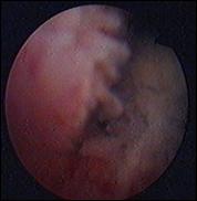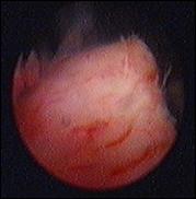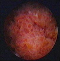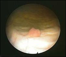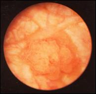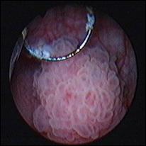Atunci cand dimensiunile partii exofitice a tumorii vezicale sunt mici, cistoscopia permite inspectia pediculului tumoral si al mucoasei vezicale adiacente, si implicit aprecierea suprafetei ce urmeaza a fi rezecata (fig. 50).