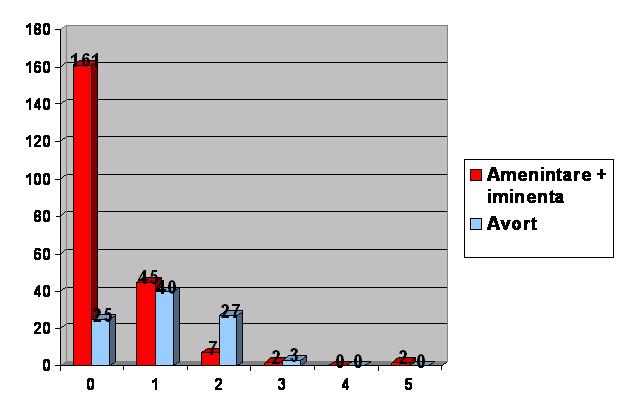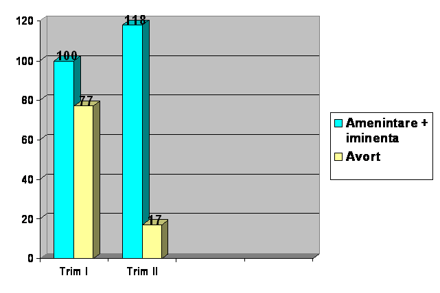 4. Antecedentele abortive (avorturi la cerere) au o importanta covarsitoare in aparitia complicatiilor in sarcinile ulterioare in trimestrele I si II.