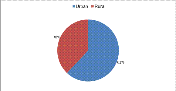 mediul de provenienta a fost de 61,99% mediul urban fata de