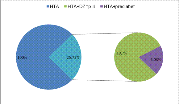 Incidenta DZ tip II in randul hipertensivilor a fost de 19,71%, observandu-se o crestere a numarului celor afectati si de diabet de-a lungul anilor de la 18,01% in anul 2002 la 25,31% in anul 2009. La un procent de 6,03% s-a constatat un TOTG alterat.