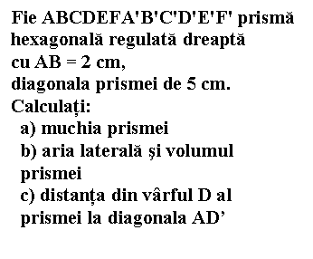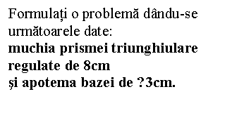 A treia plansa este o prisma triunghiulara regulata cu desenul complectat iar in text se dau datele cu care ei trebuie sa conceapa textul unei probleme pe care apoi sa o rezolve.
