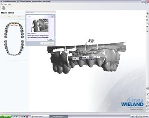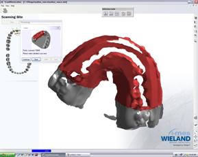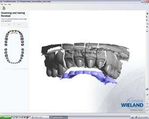 Cu ajutorul scannerului performant (2 camere video si un fascicul laser) se introduce in calculator o replica virtuala perfecta a campului protetic, care, ulterior scanarii, va fi vizualizata pe monitor.