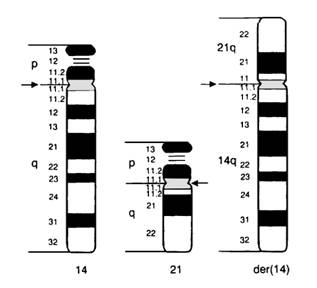 Semne clinice in t (14 q 21 q): purtatorii acestei translocatii sunt clinic normali.