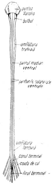 Maduva spinarii (medulla spinalis) este un cordon nervos asezat in canalul neural sau rahidian al coloanei vertebrale. Are o lungime de cca. 45 cm si se intinde de la nivelul vertebrei atlas pana la a doua vertebra lombara (l2), unde se termina in forma de con, iar de aici se continua cu un fir terminal pana la coccis. Maduva spinarii nu este un cordon perfect cilindric, ci putin turtit dorso-ventral, avand diametrul transversal intre 10 si 13 mm, iar diametrul dorso-ventral de 8-9 mm.