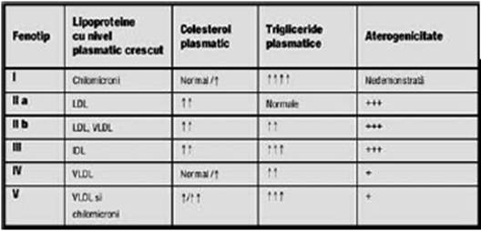 In functie de clasele lipoproteice modificate in exces, Fredrickson a emis