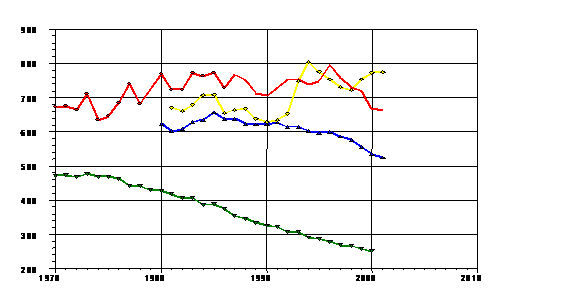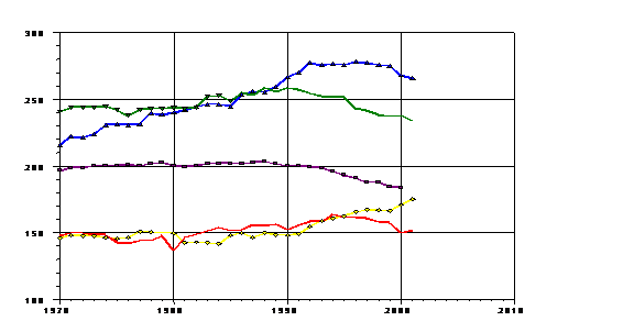 Figura 10: Evolutia mortalitatii prin cancer in Romania si Europa (1970-2001)