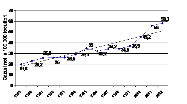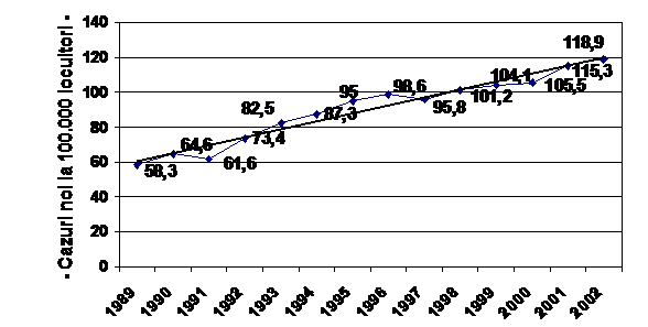 Evolutia incidentei prin sifilis in Romania (1989 - 2002)