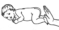 Dupa aceste miscari introductive, copilul nu se va speria daca-l ve-ti intoarce pe burta si-i ve-ti masa spatele (vezi desenele 13, 14). Ba chiar dimpotriva, el va fi dornic sa-l atingeti si se va bucura de asta. Dupa acesta intoarceti-ll cu fata in sus si incepeti sa-i masati usor abdomenul in sensul mersului acului de ceasornic. Apoi puteti sa-l intoarceti pe o parte si pe alta, bucurandu-va impreuna cu el pentru fiecare efort facut. Mai intoarceti-l inca o data pe burta pentru a-l face sa inceapa niste miscari de tarare si sustineti-l prin cuvinte incurajatoare (vezi desenul 11). Terminati exercitiile cu aceleasi mangaieri ca si la inceput, bucurandu-va impreuna de lucrul pe care l-ati reusit.