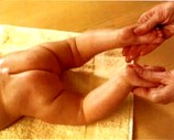 In primele luni de viata, la unii copii se remarca un tonus crescut al muschilor membrelor, iar uneori ei stau involuntar in 'poza de embrion'pe care au avut-o in viata intrauterina. Un masaj zilnic ii ajuta copilului sa sa relaxeze, sa se linisteasca, iar miscarile lui sa devina mai coordinate. Mai rar, masajul este destinat tonifierii muschilor slabiti. Mangaierile regulate ale copilului si jocul activ cu acesta vor preveni daparitia unor probleme neurologice si necesitatea de a consulta un medic ortoped.