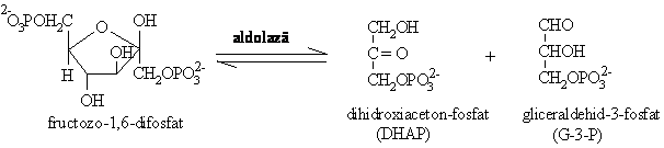 Scindarea fructozo-1,6-difosfatului se face sub actiunea fructozo -1,6- bisfosfat aldolazei si reprezinta reactia inversa unei condensari aldolice.