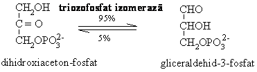 Deoarece aceasta reactie are ΔG>0 ( G = 23,8 kJ/mol) inseamna ca reactia se produce spontan de la dreapta la stanga. Aldolaza are mai multe izoenzime: aldolaza A (prezenta in toate celulele), aldolaza B (in ficat, rinichi) si aldolaza C (in creier, inima).