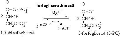 Hidroliza 1,3-difosfogliceratului cu transferul grupei fosfat pe ADP, in prezenta fosfoglicerat kinazei, rezultand 3-fosfoglicerat (3-PG) ( G = -18,5 kJ/mol).