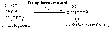 Izomerizarea 3-fosfogliceratului la 2-fosfoglicerat (2-PG) in prezenta fosfoglicerat mutazei, enzima dependenta de prezenta ionilor Mg2+ ( G = 4,4 kJ/mol).