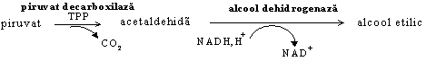 Etanol + Piruvat Acetaldehida + Lactat, respectiv Oxaloacetat + Etanol Malat + Etanal