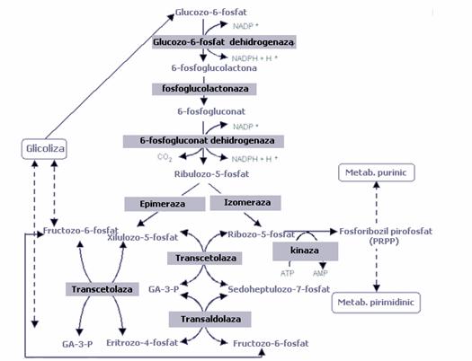 c. Daca este necesar mai mult NADPH,H+, ribozo-5-fosfatul este folosit pentru a produce intermediari glicolitici pentru ca glucozo-6-fosfatul sa fie folosit in producerea de NADPH,H+.