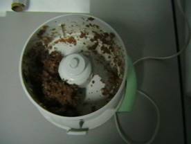 Se inmoaie de mai multe ori dispozitivul de tocare al mixerului in lichidul de digestive care se afla in paharul de laborator si se clateste bolul mixerului in lichidul de digestive pentru a scoate carnea care este aderenta.