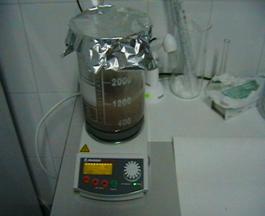 Realizarea digestiei artificiale intr-un pahar de laborator de 3 litri acoperit cu folie de aluminiu plasat pe un agitator magnetic reglat la temperatura constanta de 44 - 46 grade celsius si se agita aproximativ 30 minute
