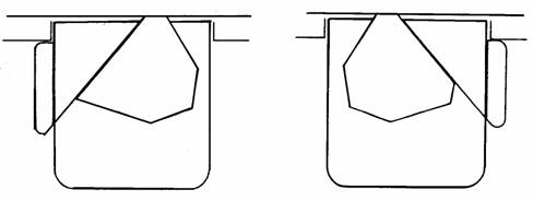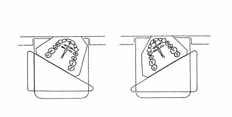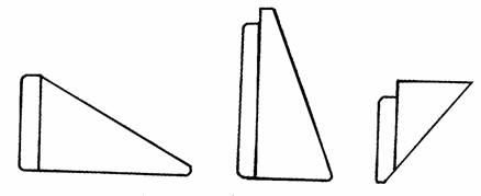Fig. 3-8 Colturile distale se taie folosind triunghiul cu unghiurile egale.