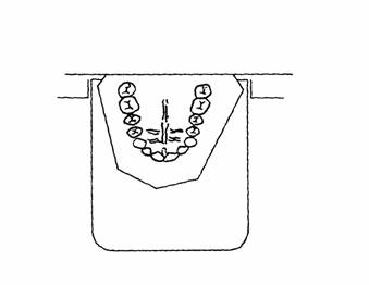 8. Partea anterioara a modelului inferior, este taiata dupa o curba ce corespunde curbei anterioare a arcadei.
