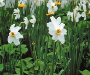 Florile albe, de regula solitare (rareori cate 2-3) la varfu tulpinii, foarte placut mirositoare au un perigon format din 6 tepale unite la baza sub forma de tub, iar in partea superioara a tubului se afla o paracoronula de culoare gabena si cu marginea rosie. Androceul este alcatuit din 6 stamine inserate pe tubul perigonului, iar gineceeul tricarpelar are ovarul inferior protejat de un spat membranos. Fructu pseudocapsular oculicida.