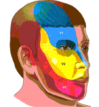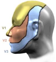 - fibrele radacinii intra in portiunea concava a semilunei, iar cele 3 diviziuni (V1, V2, V3) ies din convexitatea sa.
