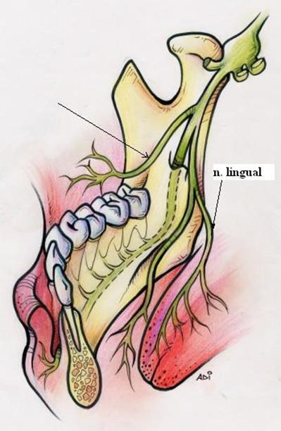 prin osul alveolar intra in gingie pentru a asigura inervatia senzitiva a papilelor interdentare si gingia vestibulara.