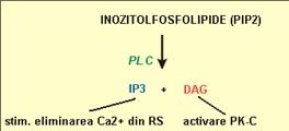 Mesagerii intracelulari apar in prezenta fosfolipazei C (PLC) care actioneaza asupra inozitolfosfolipidelor membranare, in special asupra fosfatidilinozitol-4,5-bifosfatului (PIP2). Astfel, se formeaza diacilglicerol (DAG) si inozitoltrifosfat (IP3), mesageri secundari cu rol important in modularea contractiei muschiului neted. DAG activeaza proteinkinaza C (PKC) implicata in fosforilarea anumitor proteine intracelulare, iar IP3 induce eliberarea Ca2+ din reticulul sarcoplasmatic.