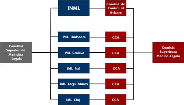 In cadrul institutelor de medicina legala din centrele medicale universitare, precum si in cadrul Institutului de Medicina Legala "Prof. Dr. Mina Minovici" functioneaza Comisii de avizare si control al actelor medico-legale.