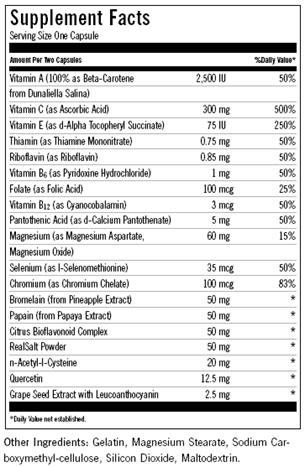 Contine n-Acetyl-L-Cysteina, un important amino-acid folosit de corp pentru producerea glutationului.