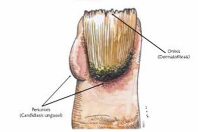 In general ,onixisurile tricofitice nu se insotesc de perionixis .De obicei sunt atinse mai multe unghii ,adesea la maini sunt lezate 9 din 10 .