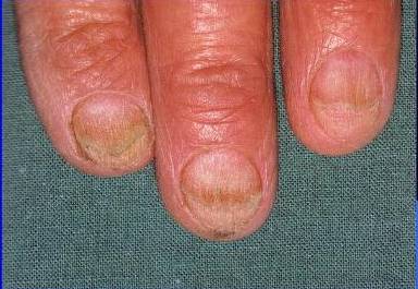 ,,Onix" reprezinta unghie si ,,luys" distrugere ,se manifesta printr-o decolare progresiva a unghiei de patul unghial incepand le la marginea libera spre baza .Spatiul astfel creat se poate umple cu sange ,cu puroi , cu lichid seros ,suprafata unghiei isi va schimba culoarea corespunzator fiecarui continut .De exemplu culoarea se poate schimba datorita unui hematom subunghial in urma unui traumatism .Contactul cu diverse substante chimice ,unele dintre ele fiind folosite chiar pentru ingrijirea unghiilor ,detergenti ,umezeala excesive ,infectiile cu ciuperci sau cu alte microorganisme ,psoriazisul ,bolile de colagen pot determina acest tip de modificare .