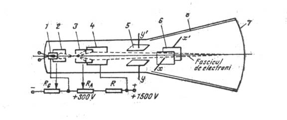 Elementui principal al unui osciloscop este tubul catodic. Pentru a putea afisa pe ecranul tubului catodic curba ce reprezinta dependenta intre doua marimi, A=f si verticala (y), pentru a descrie pe ecran curba dorita ceea ce este posibil avind in vedere: