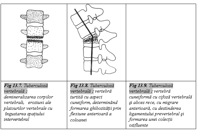 mai rareori afectarea osului se produce prin contiguitate de la un proces pleural tuberculos la o coasta sau de la un proces adenopatic tuberculos mediastinal la corpii vertebrali;