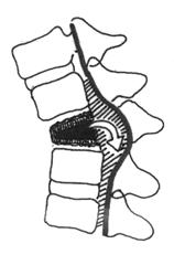 osteoporoza regiunilor juxta-discale ale corpilor vertebrali lezati - datorita osteoporozei conturul platoului vertebral apare mai net, realizand "chenarul de doliu" (Menard);