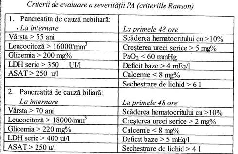 Criteriile utilizate sunt diverse, cele mai populare ; criterii de severitate fiind propuse de Ranson.
