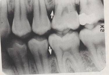 Mai frecventa la molarii maxilari dar mai vizibila radiologic la cei mandibulari