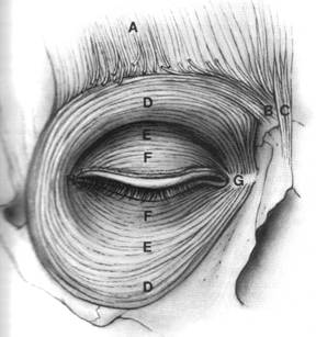 Fig. 7.2 - Dispozitia muschilor palpebrali