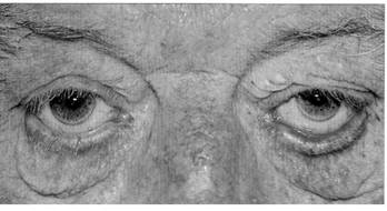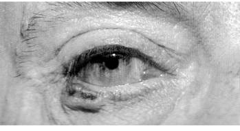 edem limfangitic cronic, edem palpebral prin epilarea sprancenelor;