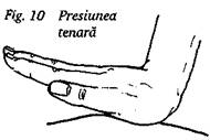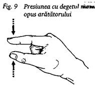 Pentru a asigura stabilitatea, apasati varful degetului mijlociu peste unghia aratatorului. Celelalte degete raman lipite. Presiunea este aplicata cu varful aratatorului (fig. 11). Se utilizeaza in tratamentul fetei si al partilor laterale ale nasului.