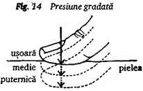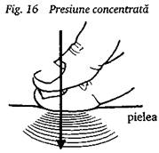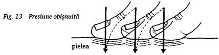 Presiunea se aplica in mod gradat, in trei trepte - usoara, medie si puternica, cu o pauza intre treapta a doua si a treia (fig. 14).