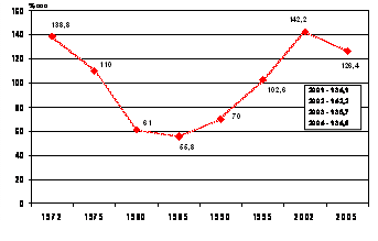 In anul 2005 au fost raportate 1.110 cazuri de imbolnavire la copii, iar in 2004 s-au inregistrat 2.089 de decese cauzate de TB.