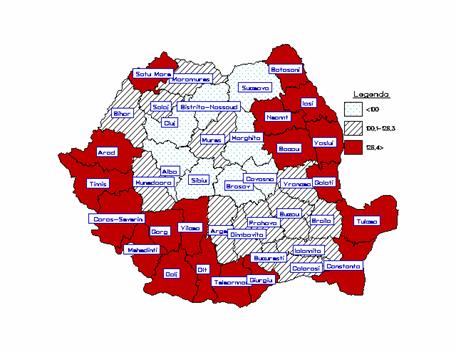 Foarte probabil ca un factor important al severitatii endemiei TB din Romania il reprezinta problemele socio-economice. Scaderea nivelului de trai a influentat cu certitudine evolutia incidentei, dovada fiind si faptul ca incidenta cea mai mare se inregistreaza (asa cum reiese din harta prezentata in Figura 2) in judetele din sudul tarii si din Moldova, cele care au si cele mai importante probleme socio-economice.