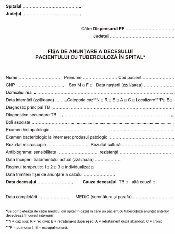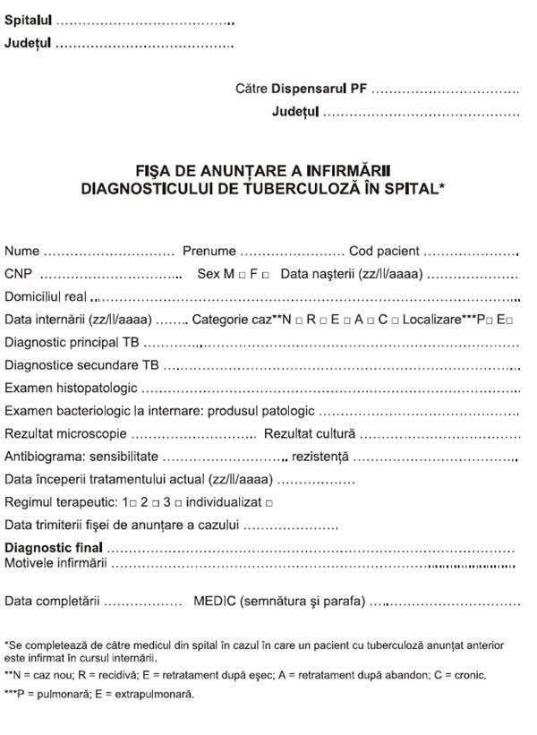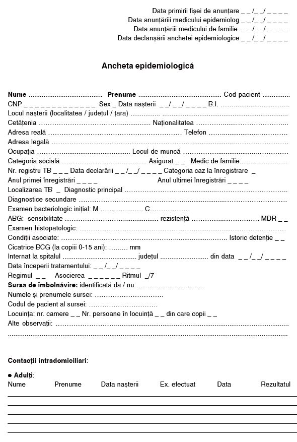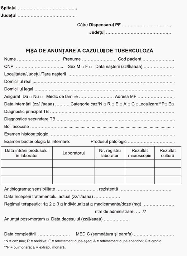 (Sursa: Indrumarul de supraveghere epidemiologica a tuberculozei si de monitorizare a aplicarii PNCT", paginile 18 - 19)